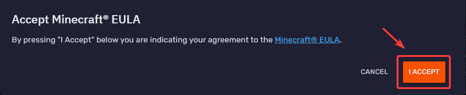 The last step is to accept the EULA, just click on the "Accept" button and the server will start.